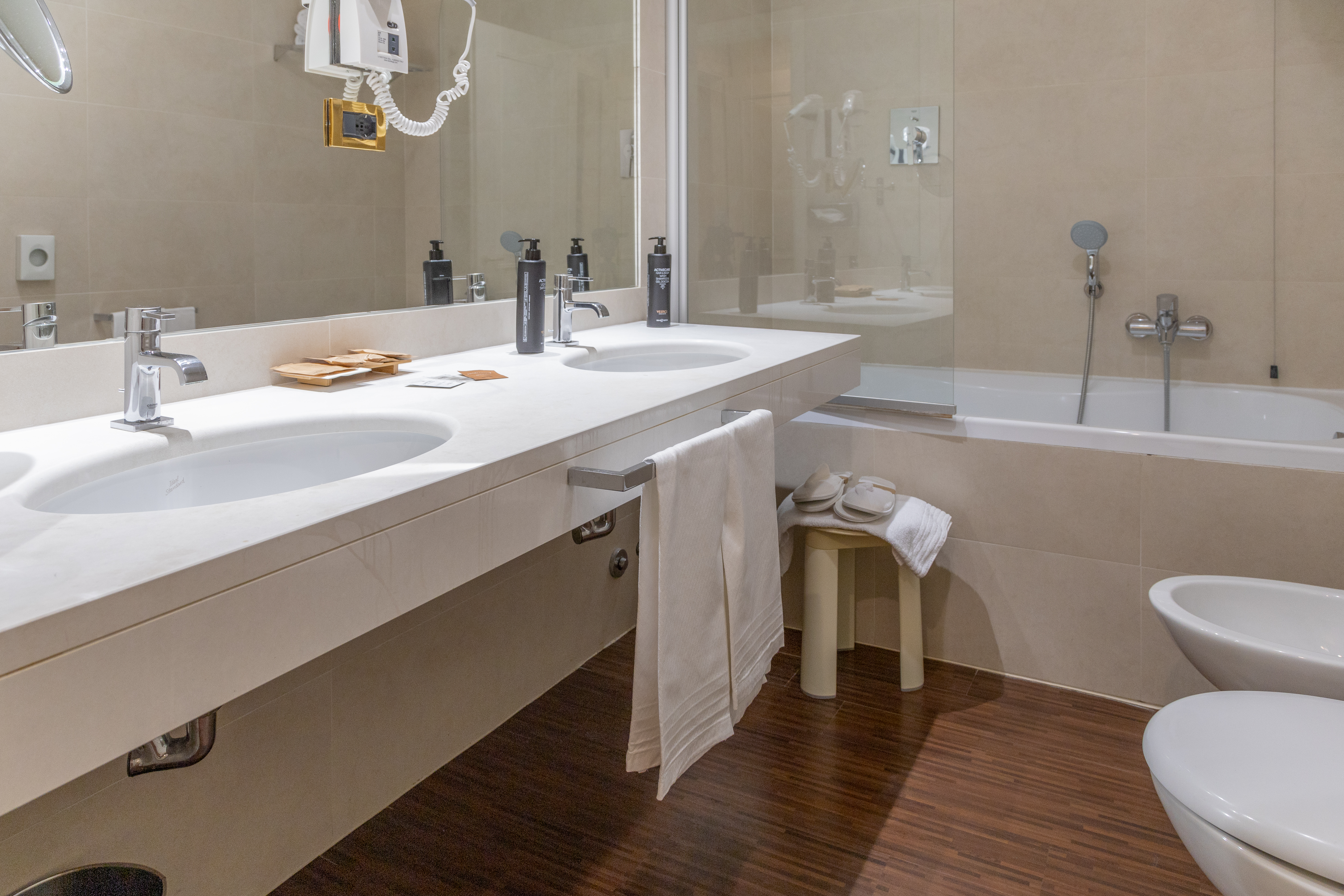 Tra i comfort esclusivi, la camera è dotata di ciabatte e accappatoio, per un soggiorno ancora più rilassante. Inoltre, troverai una macchina del caffè espresso e un bollitore, per concederti una pausa con una bevanda calda in qualsiasi momento della giornata.