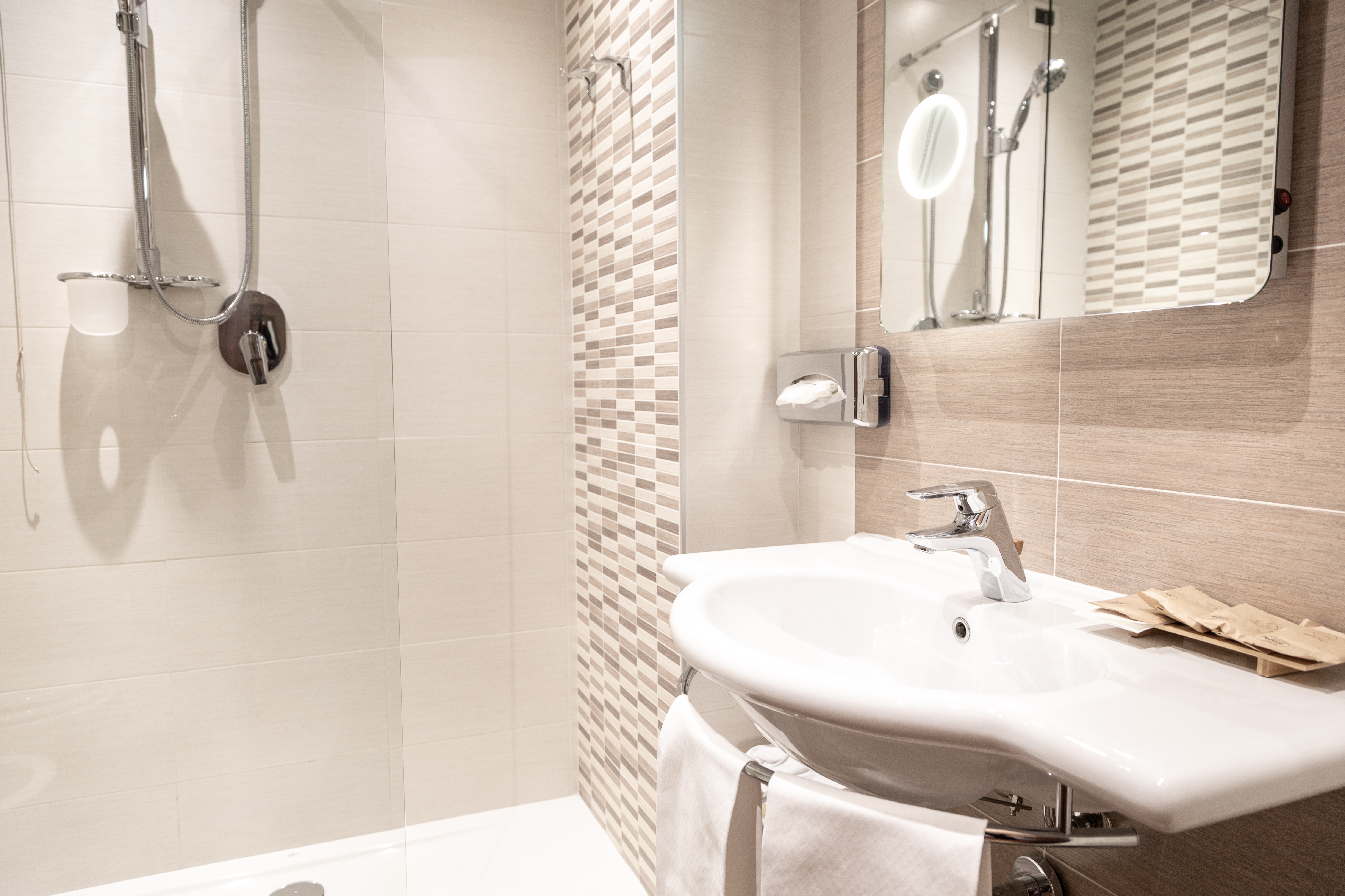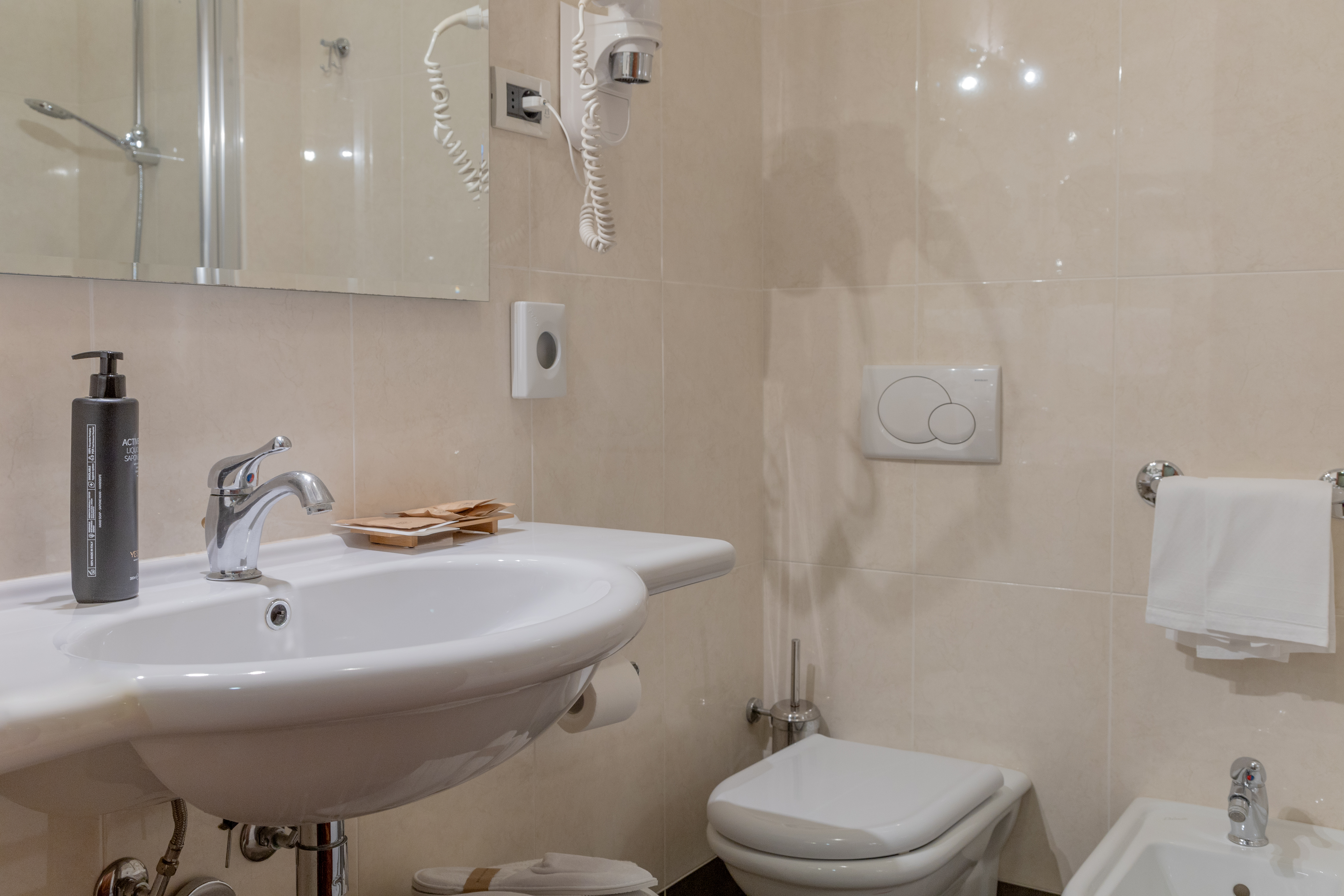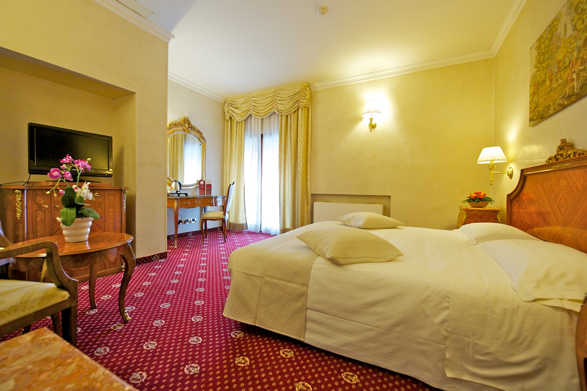 The room is equipped with all the necessary comforts to make your stay pleasant: a safe for your valuables, air conditioning and heating to maintain the perfect temperature, and a desk for those who need to work or stay organized. The carpeted or parquet flooring and the wardrobe provide both practicality and comfort.